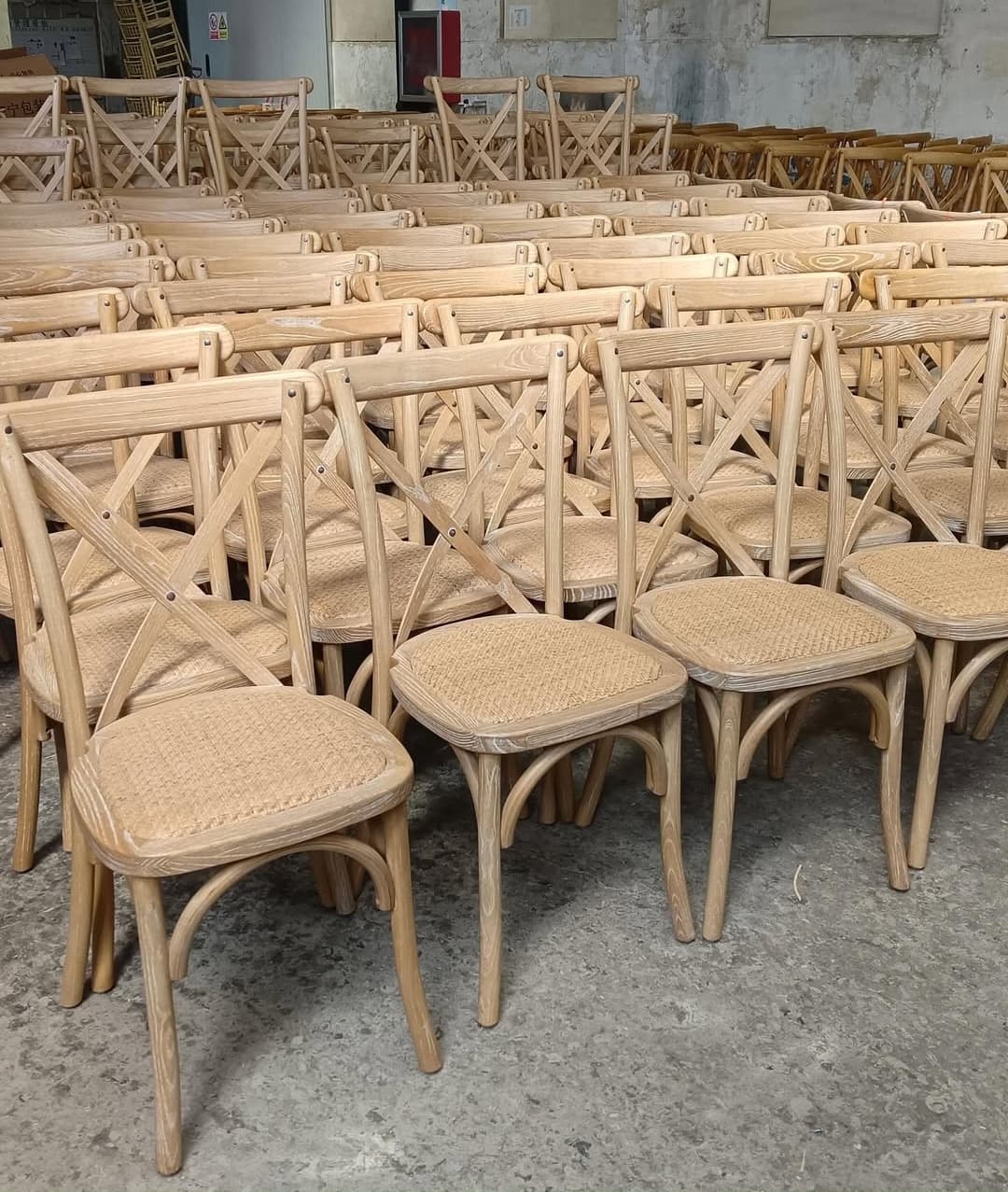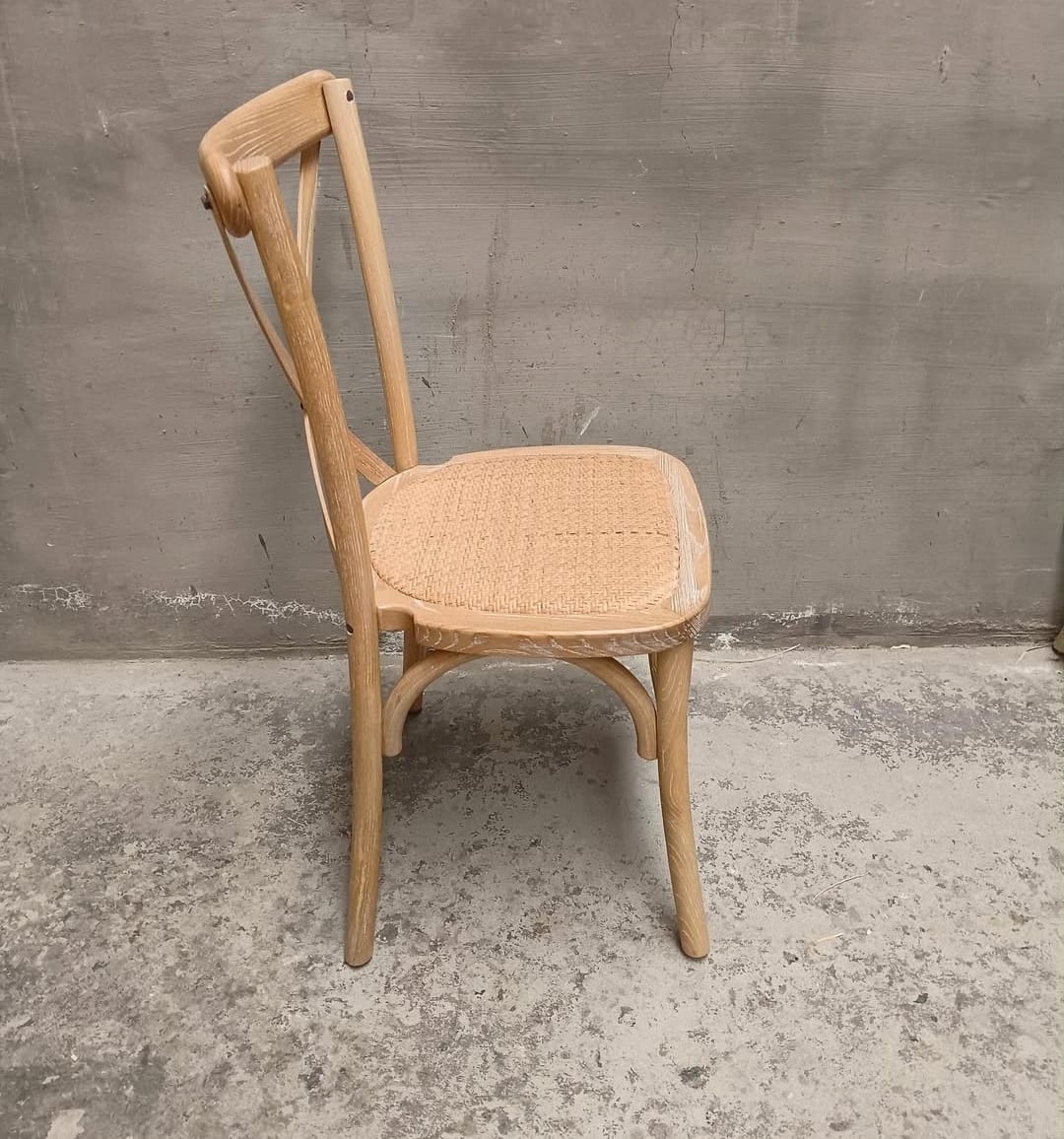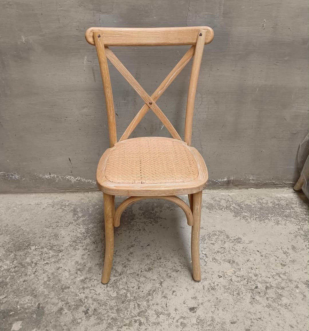 Add timeless elegance and natural charm to your space with our Wooden Cross-Back Chair featuring a beautifully crafted rattan seat. Designed to complement both modern and rustic interiors, this chair is perfect for dining areas, events, cafés, and home décor.